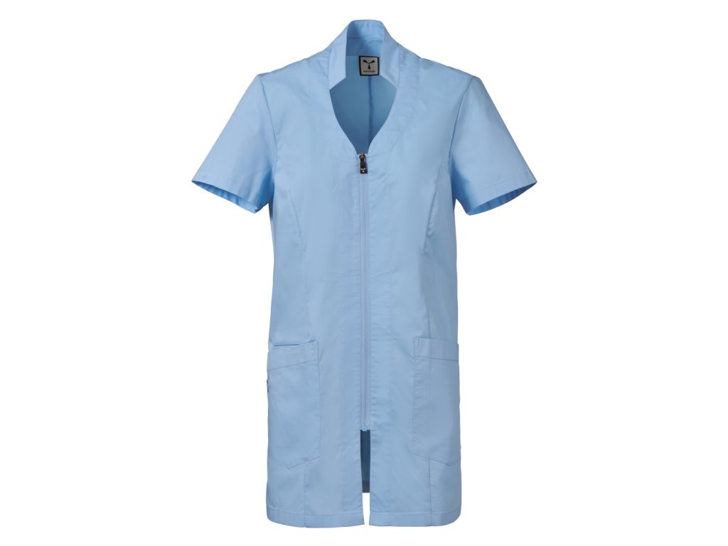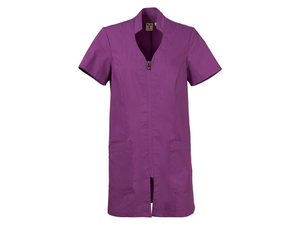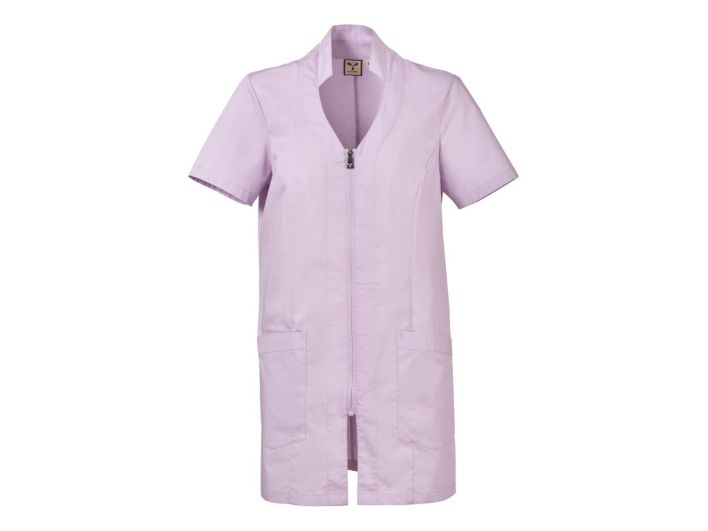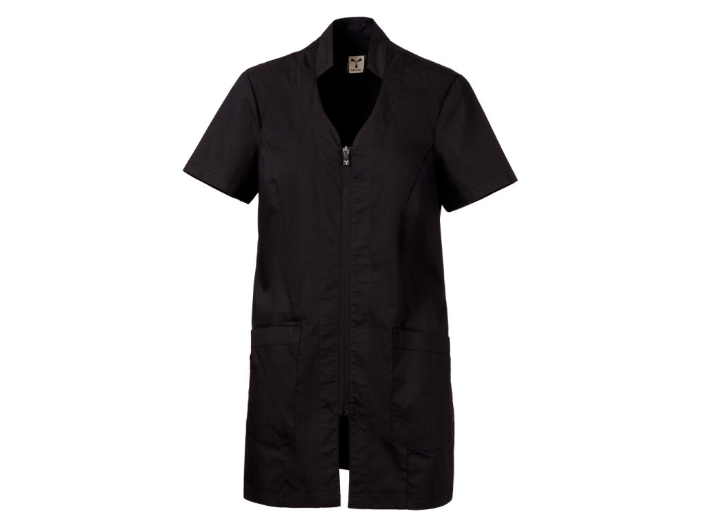 Stylový a funkční dámský plášť určený pro profesionální použití v úklidových, servisních nebo čistících provozech, kde je důležitý reprezentativní vzhled a komfort během pracovního dne. Plášť kombinuje elegantní střih se stojáčkem a naznačeným výstřihem do V, což vytváří upravený a žensky laděný pracovní outfit.