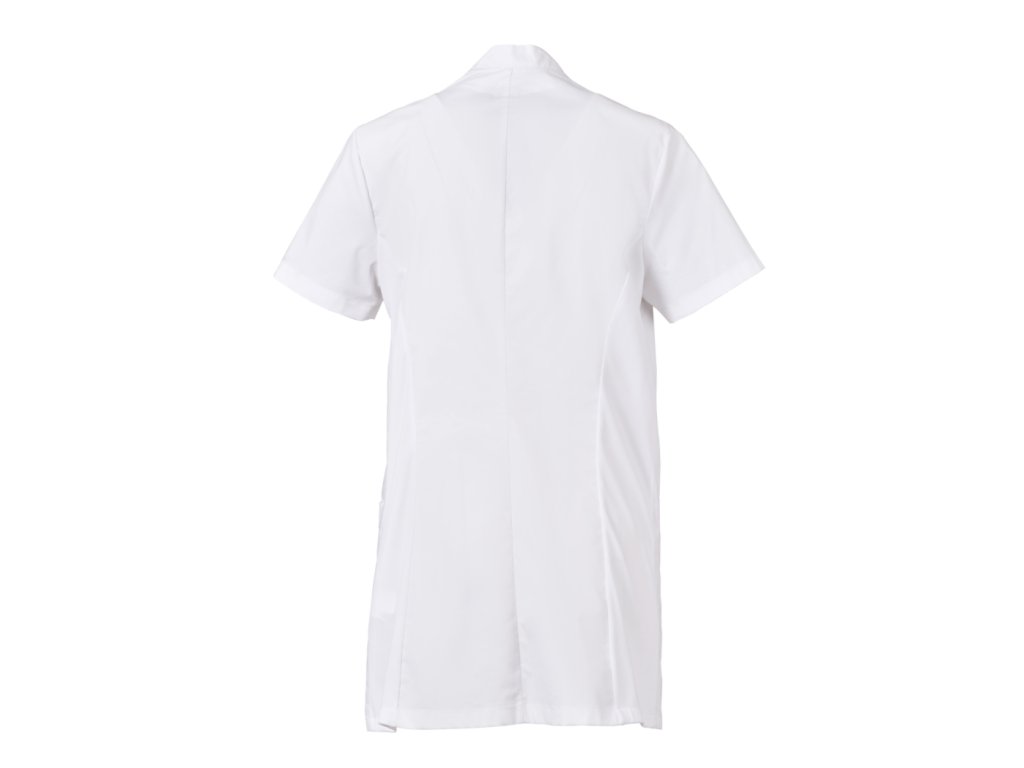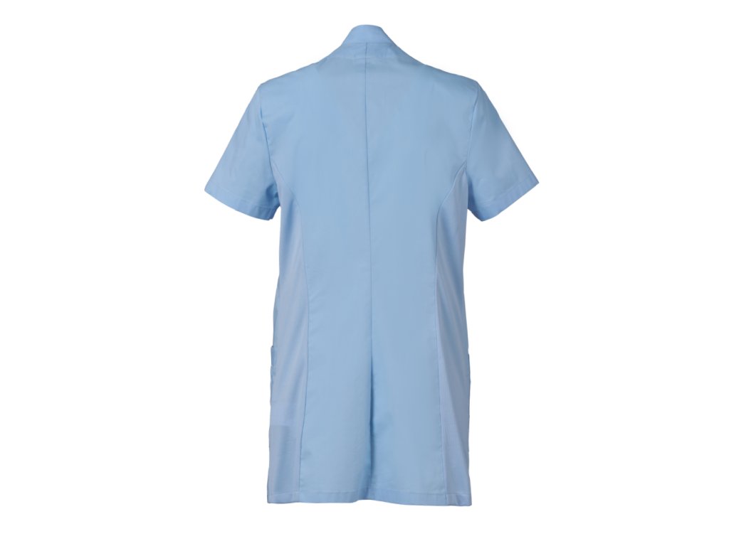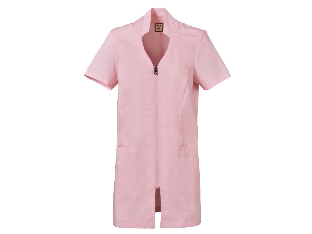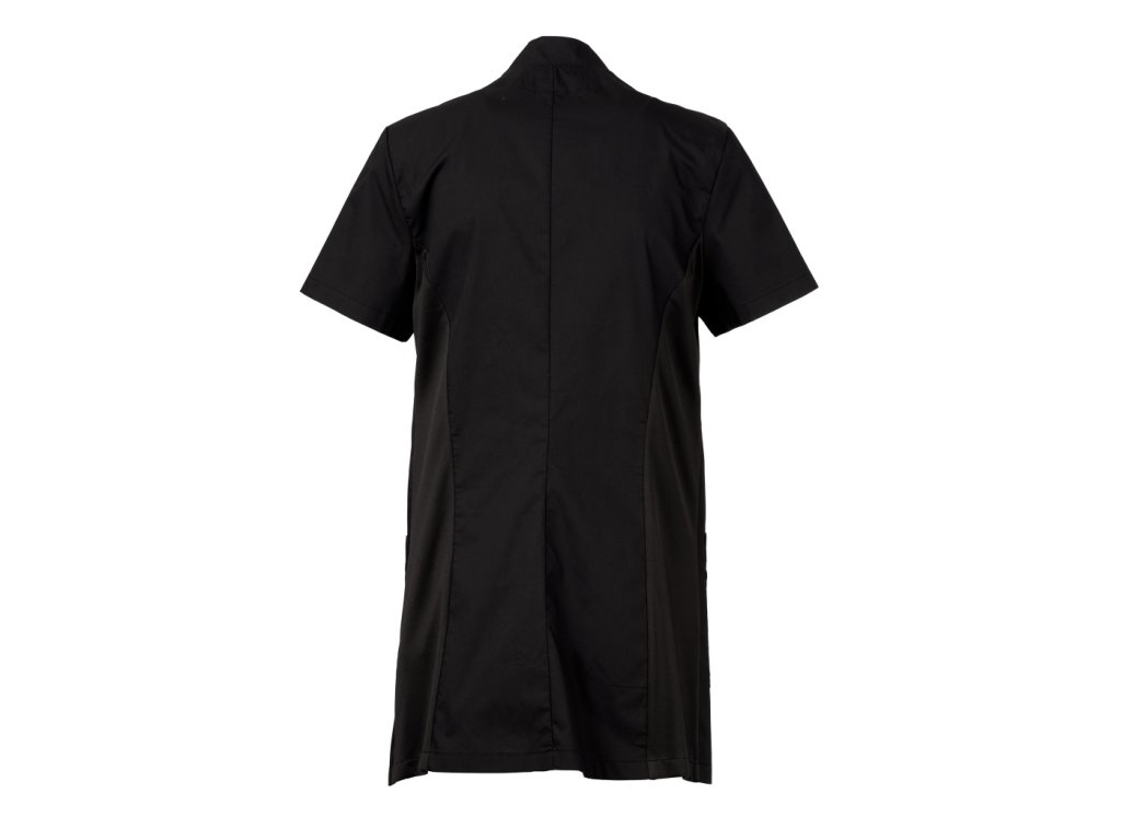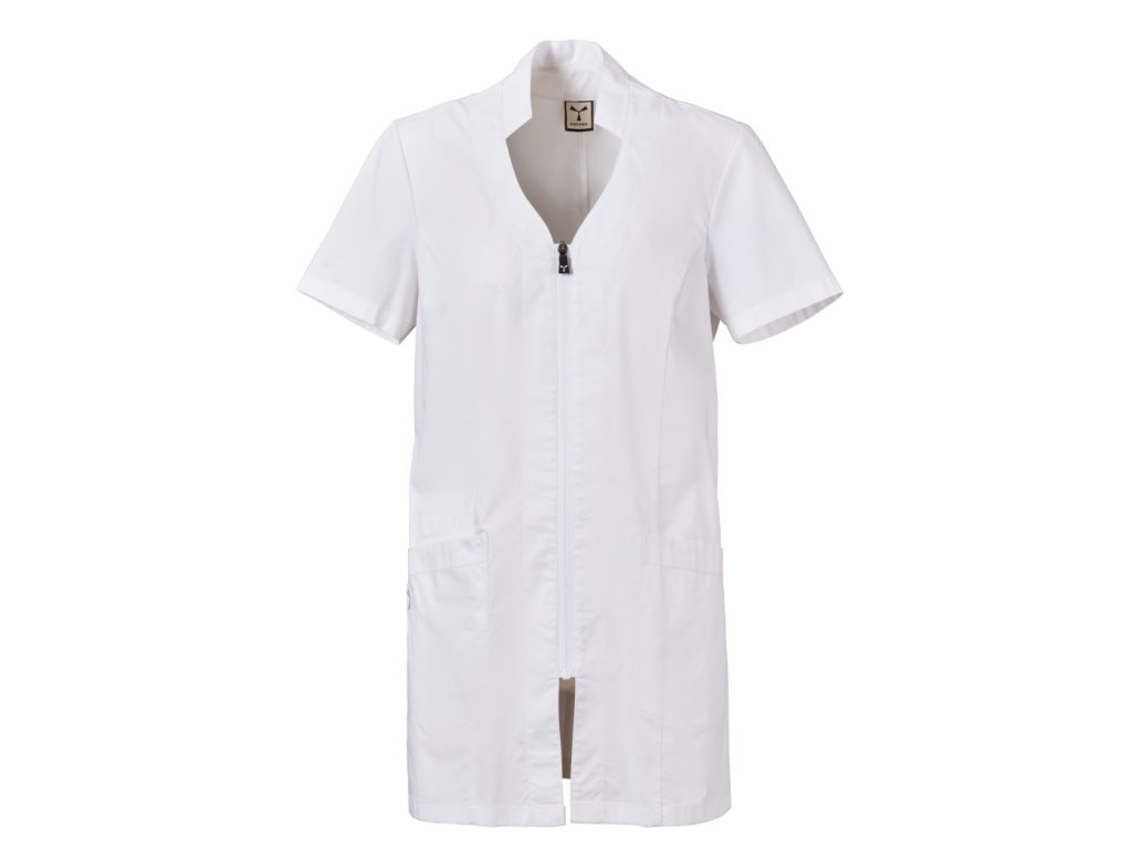 Stylový a funkční dámský plášť určený pro profesionální použití v úklidových, servisních nebo čistících provozech, kde je důležitý reprezentativní vzhled a komfort během pracovního dne. Plášť kombinuje elegantní střih se stojáčkem a naznačeným výstřihem do V, což vytváří upravený a žensky laděný pracovní outfit.