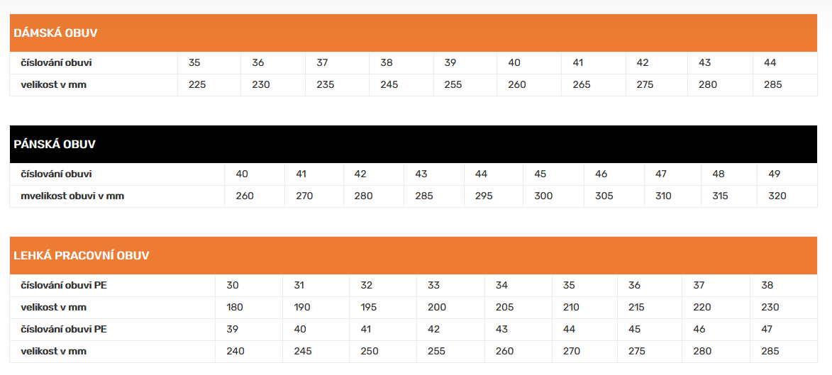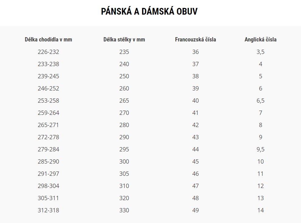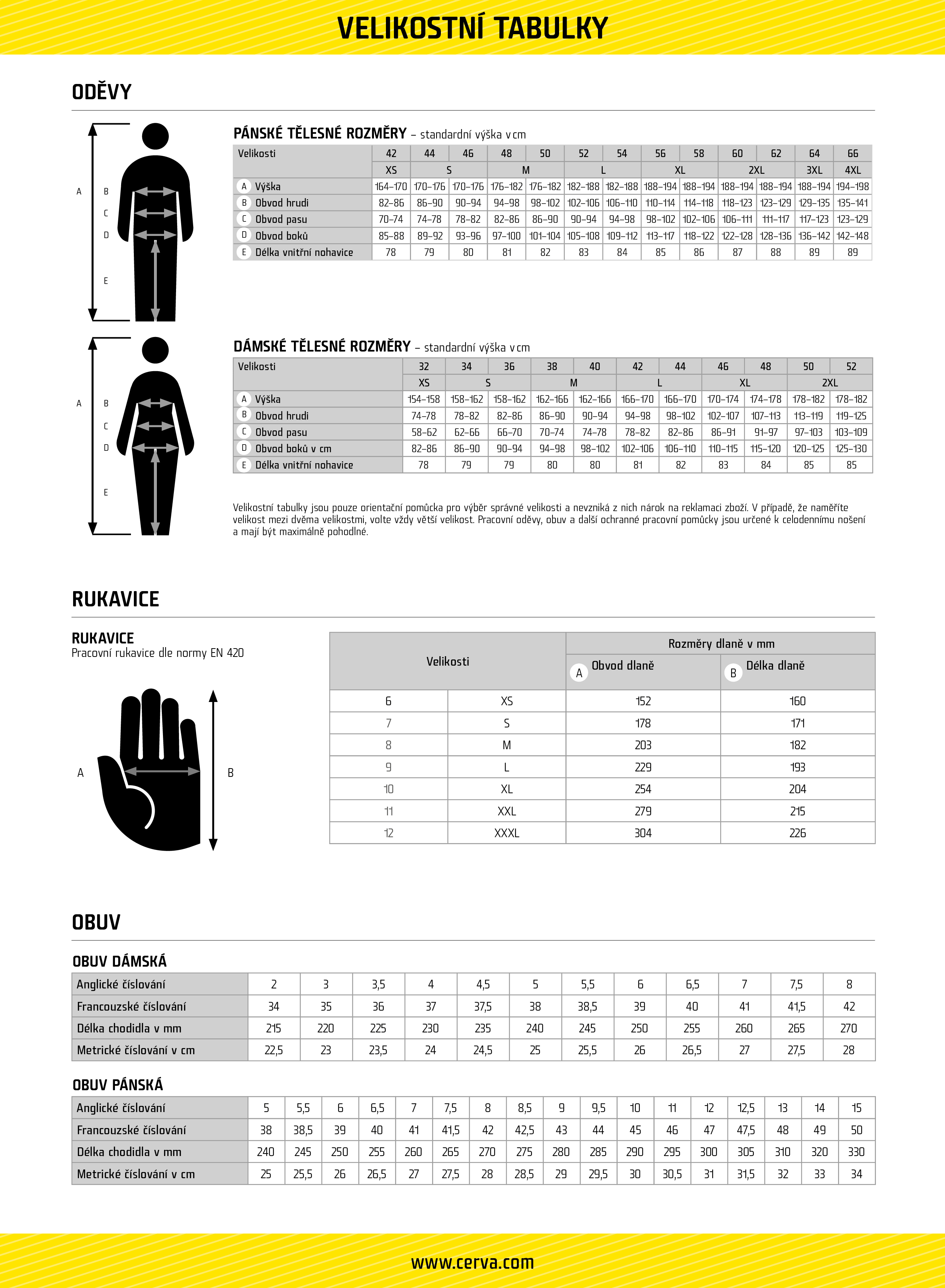 Máte problém s výběrem té správné velikosti? Nahlédněte do některé z přiložených tabulek: